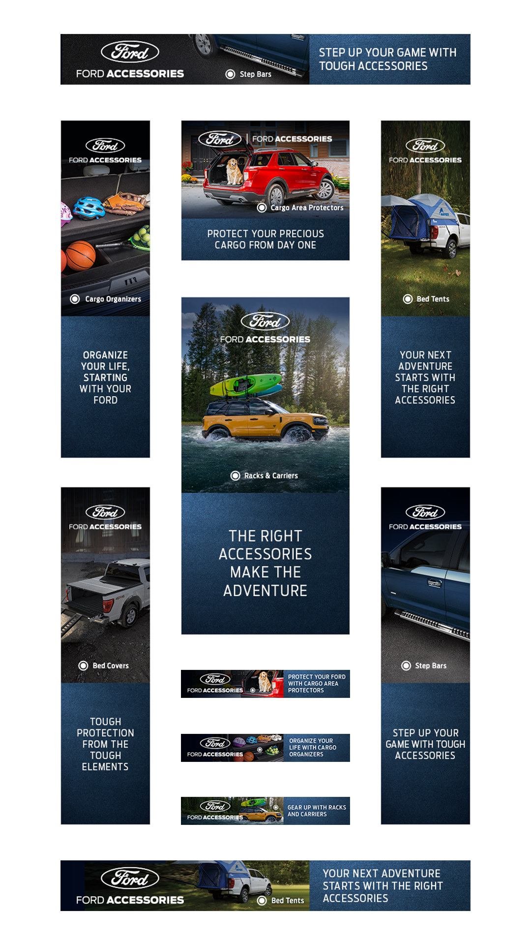 A set of banners to get people to click through and look at accessories made specifically for their Ford.